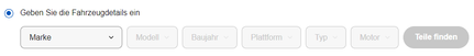 - Über den Teilefinder können Käufer*innen Details zu ihrem Fahrzeug angeben. Oder sie wählen ein Fahrzeug aus, das sie im Bereich My Garage bereits gespeichert haben.